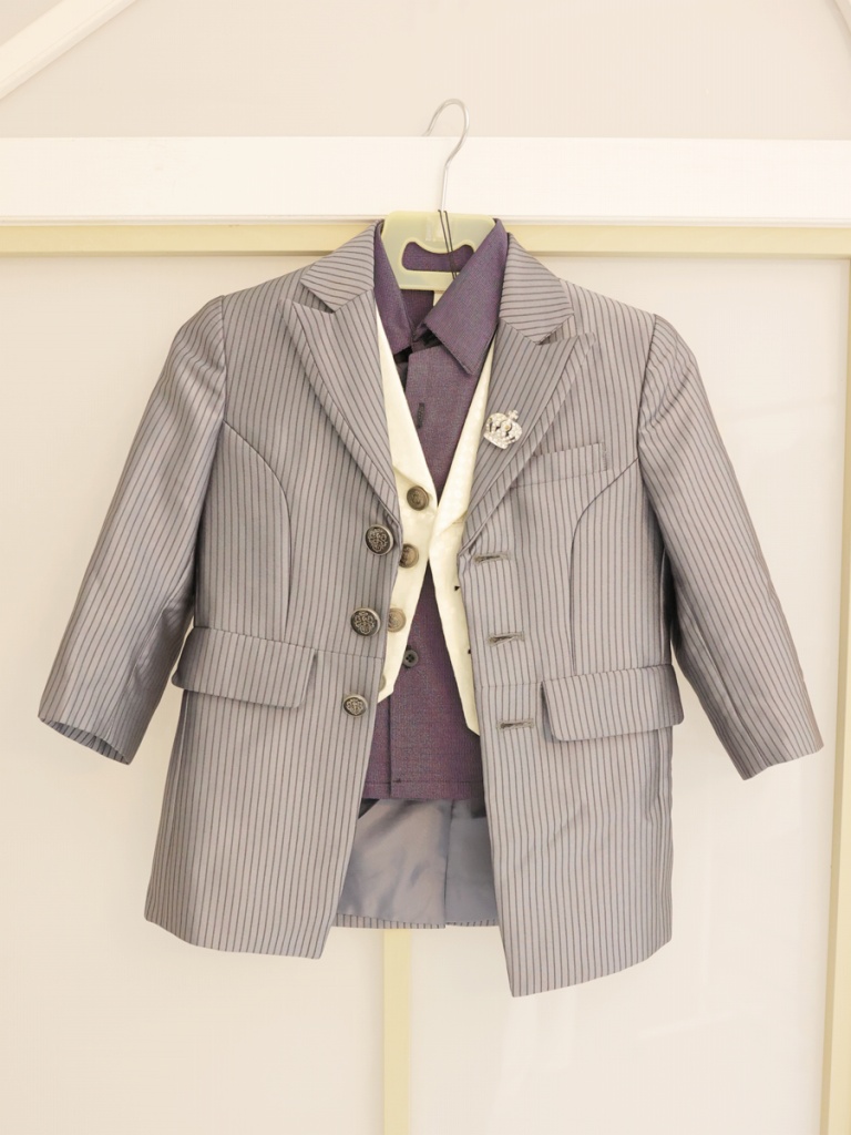 商品名 : 5クリーム茶① かぶと S 七五三 5歳児用 撮影専用着物です。