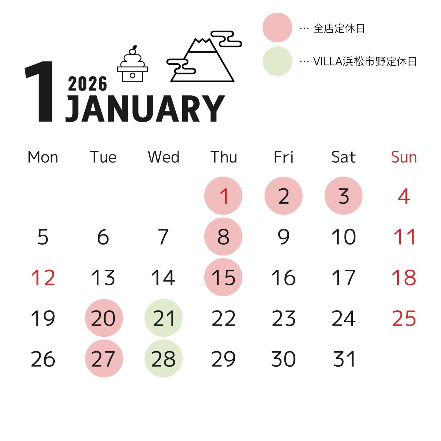 2026年(令和8年)1月は上記の通り、営業させていただきます。